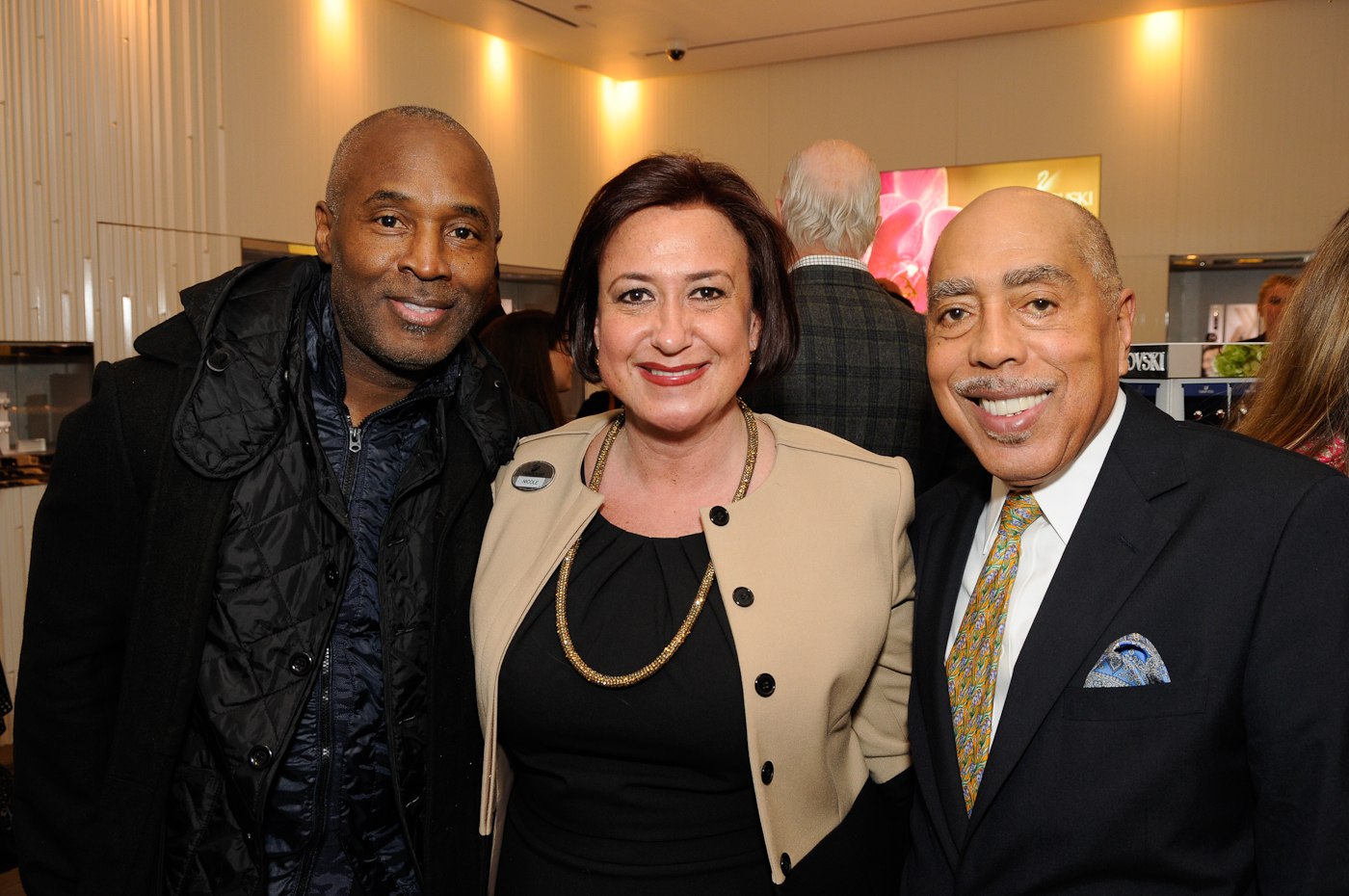 - Nick Cave (professor in the Fashion Design program at SAIC), Nicole Green (Swarovski’s store manager) and Walter Massey (president of SAIC)