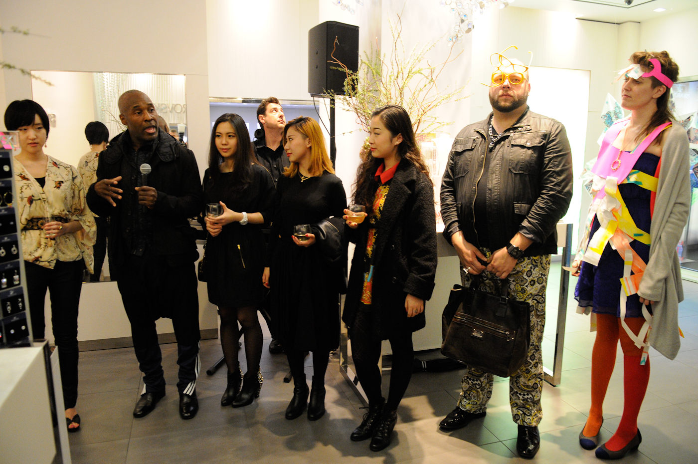 - Nick Cave watches as Walter Massey discusses the partnership with Swarovski and introduces the stunning window display