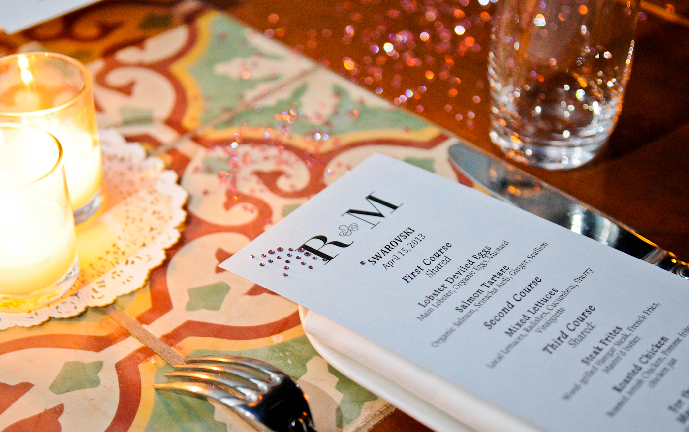 Following cocktails, a small group of fashion media took a quick cab ride (in Uber black cars, no less) to RM Champagne Salon in the stylish West Loop. Swarovski execs rubbed elbows with Chicago media indulging in really great comfort food. The first course was lobster deviled eggs and salmon tartare, followed by a salad and a main course of shared steak frites, roasted chicken, macaroni gratin, finishing with a mini chocolate parfait. We left with sparkly goodies—a Swarovski wallet and stunning bracelet.