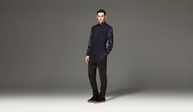 - Shirt in Navy/Camo Print, $29.99 French Terry Sweatpant in Camo Print, $29.99 High Top Sneaker in Black, $44.99