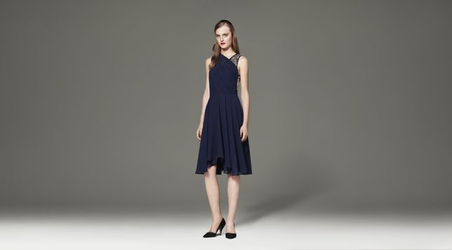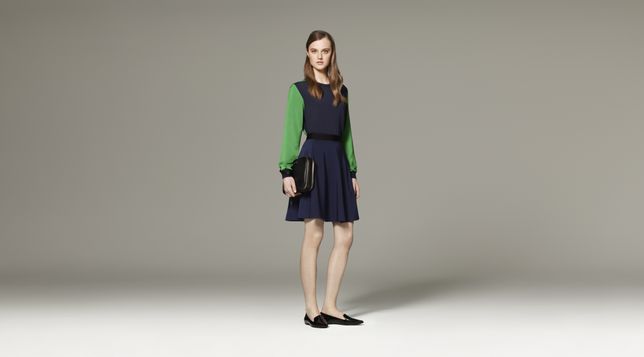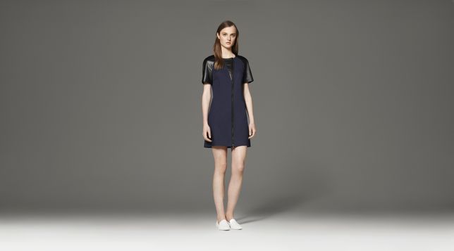 - Dress with Faux Leather in Navy/Black, $49.99 *Shoes by 3.1 Phillip Lim