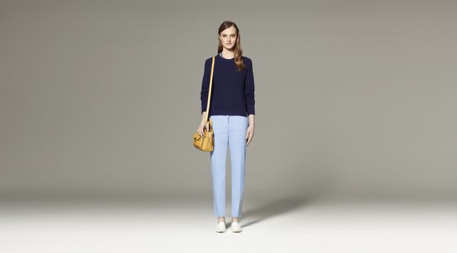 - Sparkle Sweater in Navy, $39.99 Pant in Light Blue, $39.99 Mini Satchel in Gold, $34.99 *Shoes by 3.1 Phillip Lim