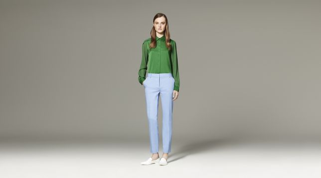 - Long-Sleeve Blouse in Green, $29.99 Pant in Light Blue, $39.99 *Shoes by 3.1 Phillip Lim